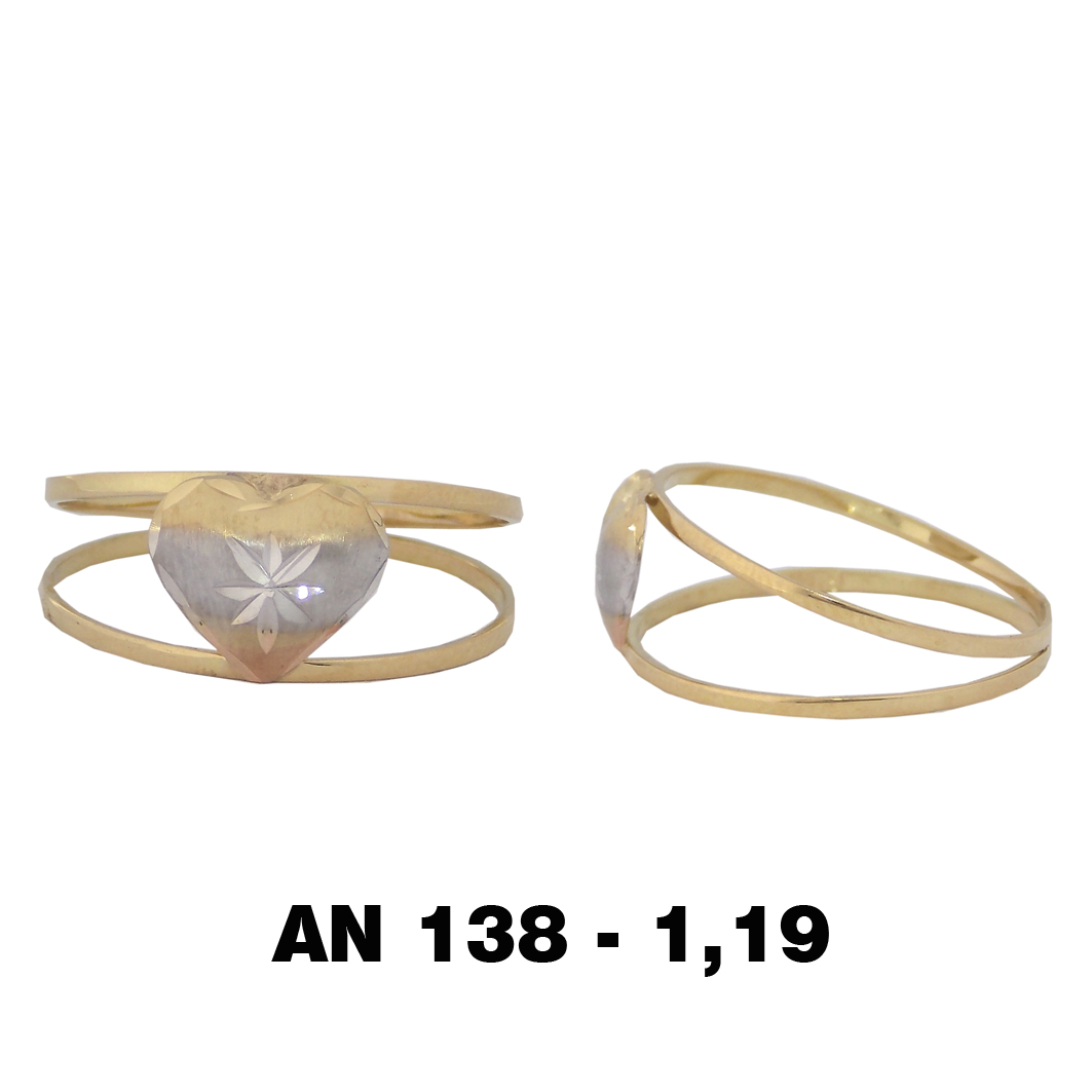 Anel Tricolor Coração com Flor