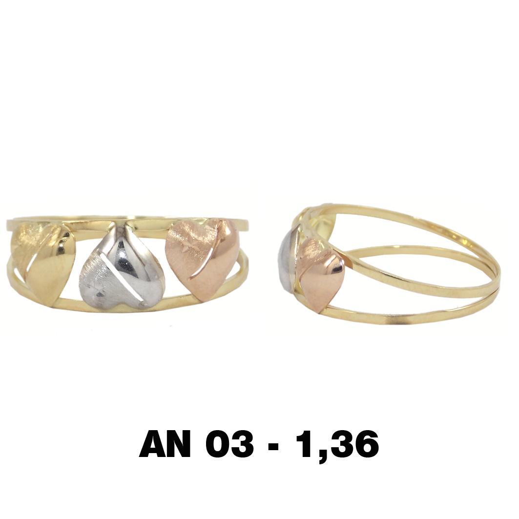 anel tricolor de coração AN03